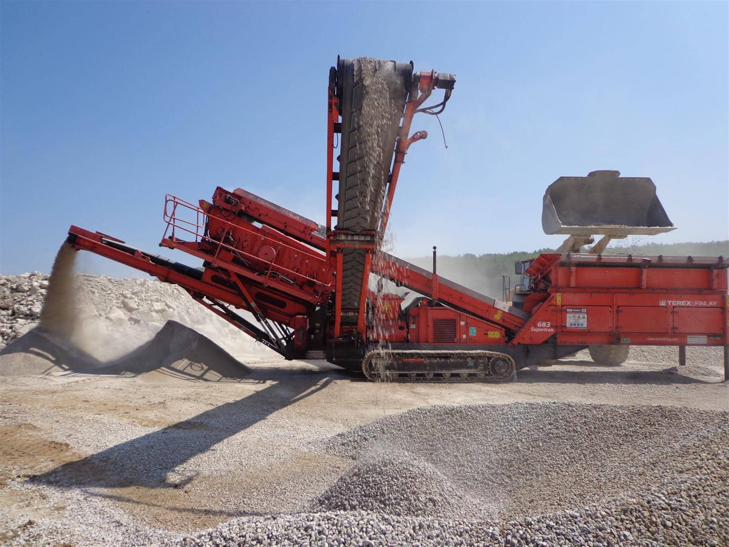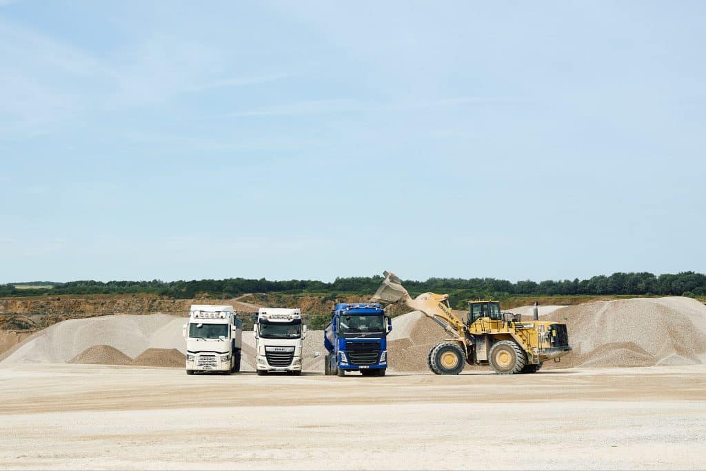 Les pierres sont ensuite chargées et acheminées par dumpers vers les installations de traitement pour procéder à la fabrication des différents matériaux. Plusieurs étapes constituent le process de fabrication : concassage (fragmentation ou broyage), criblage (pour classification des matériaux) et manutention par bandes transporteuses sur convoyeurs.