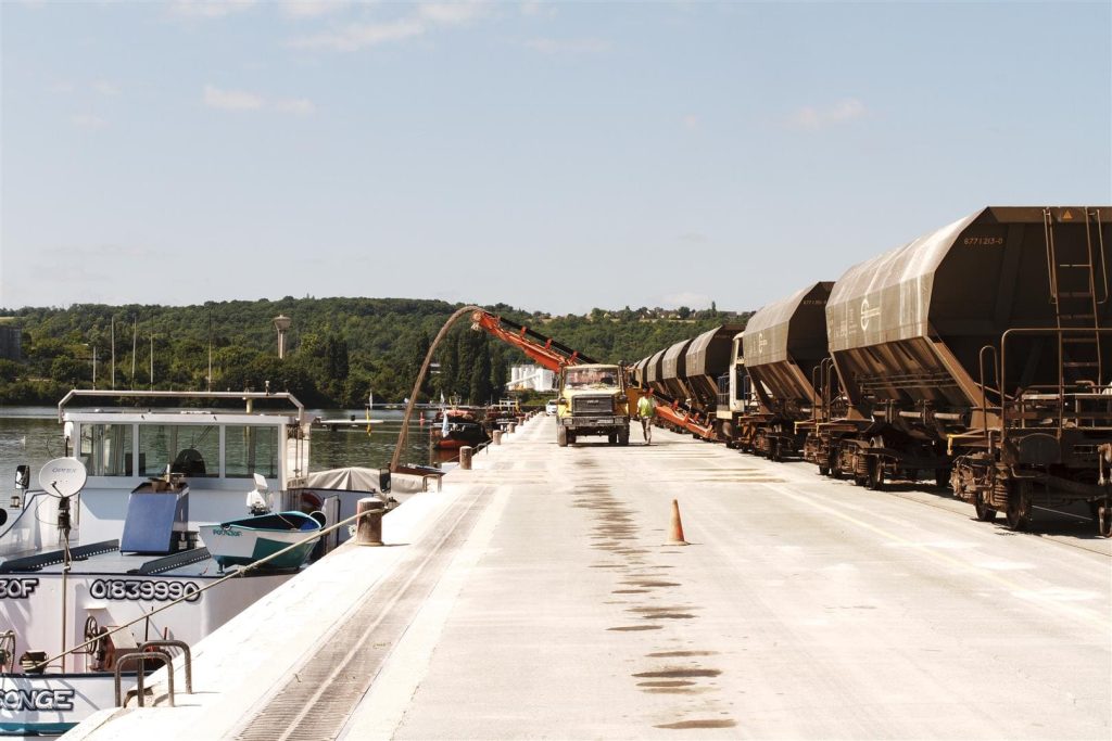 - Par voie ferroviaire trains : terminal ferroviaire dernière génération avec 4 millions de tonnes de capacité, 25% du transport de granulats en France. Site embranché depuis 1976.