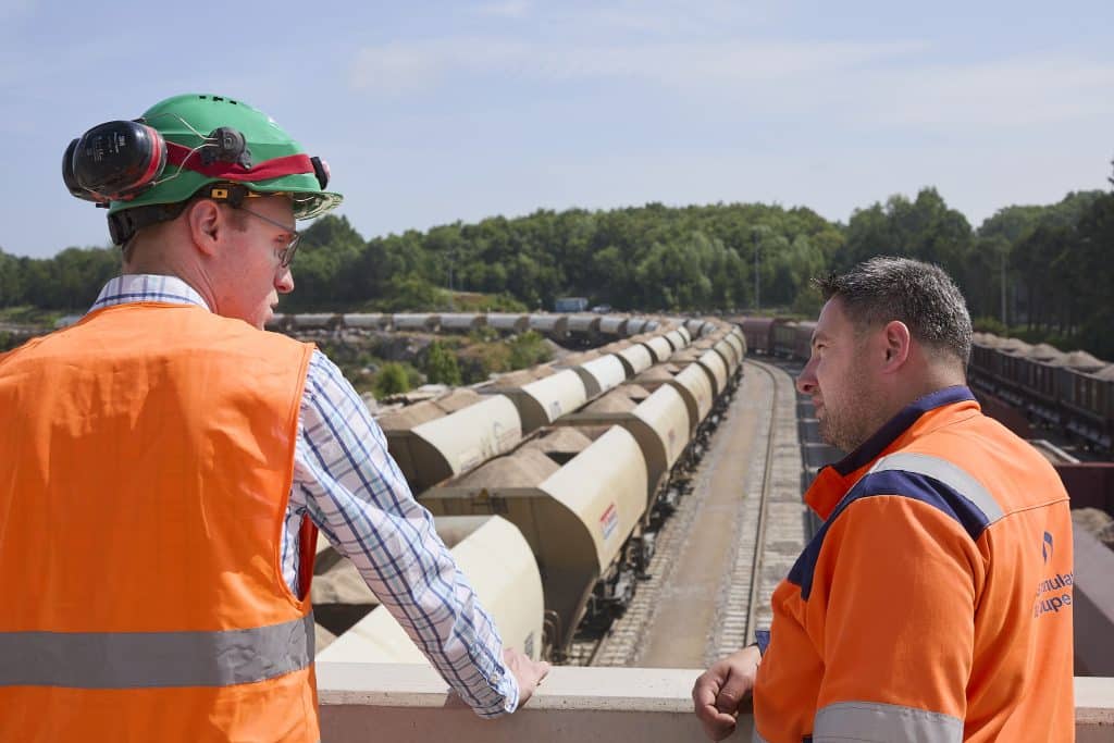 La carrière de Ferques fabrique ses propres explosifs et procède elle-même avec ses experts du service minage à 2 à 3 tirs quotidiens pour abattre jusqu’à 35 000 tonnes chaque jour. Cette opération très sensible répond à un protocole de sécurité strict et un suivi administratif rigoureux.